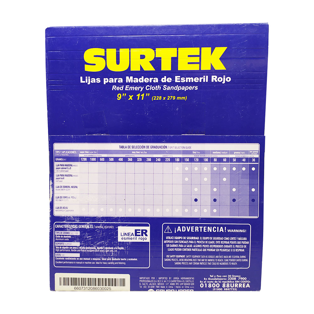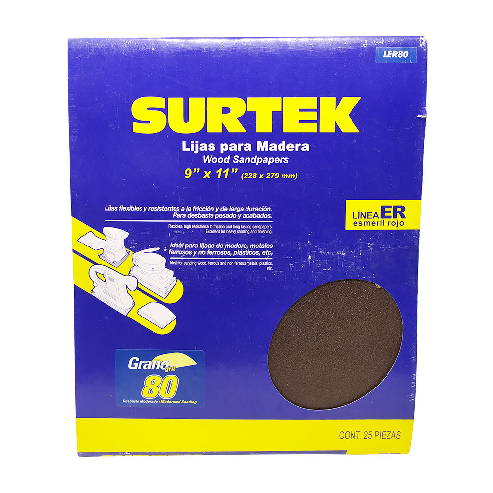LIJA DE ESMERIL GRANO 80 DE ÓXIDO DE ALUMINIO 9 X 11 PULGADAS ROJO SURTEK LER80