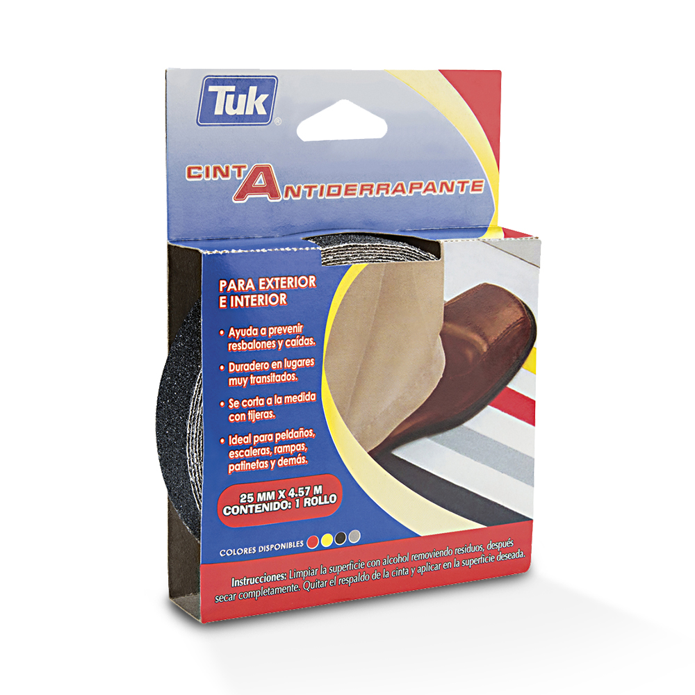 CINTA ADHESIVA ANTIDERRAPANTE TUK 770 NEGRO 25 MILIMETROS X 4.57 METROS