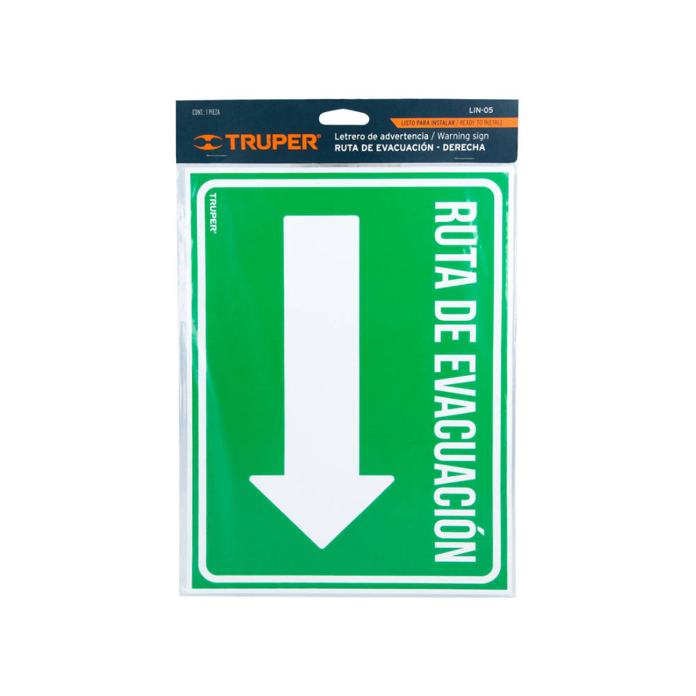 SEÑALAMIENTO RUTA DE EVACUACION DERECHA TRUPER LIN-05 DE 21 X 28 CENTIMETROS