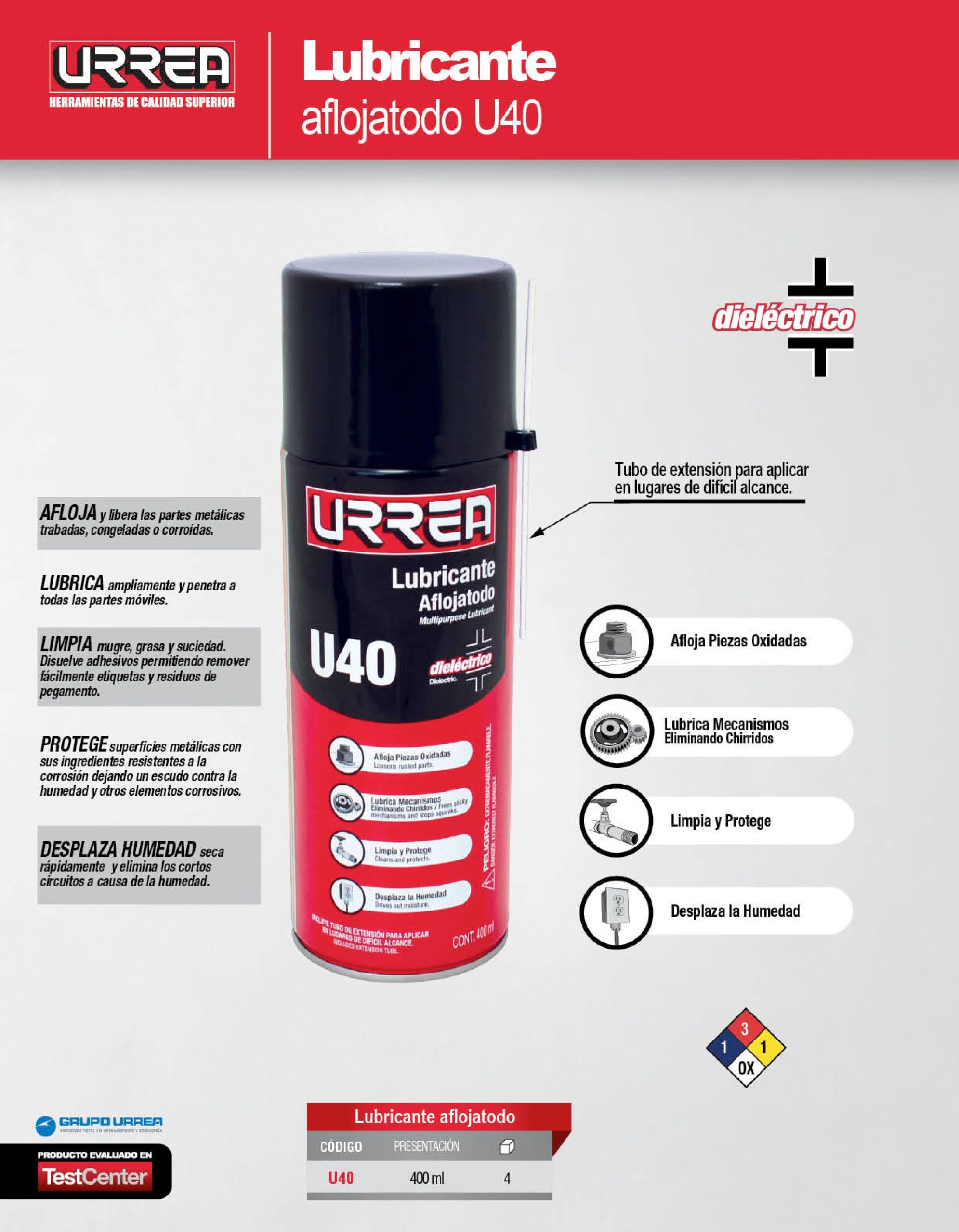 ACEITE AFLOJATODO URREA U40 DIELECTRICO LATA DE 400 MILILITROS