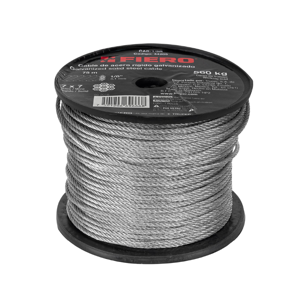 CABLE DE ACERO FIERO CAB-1/8R 7X7 HILOS 1/8 PULGADA 75 METROS