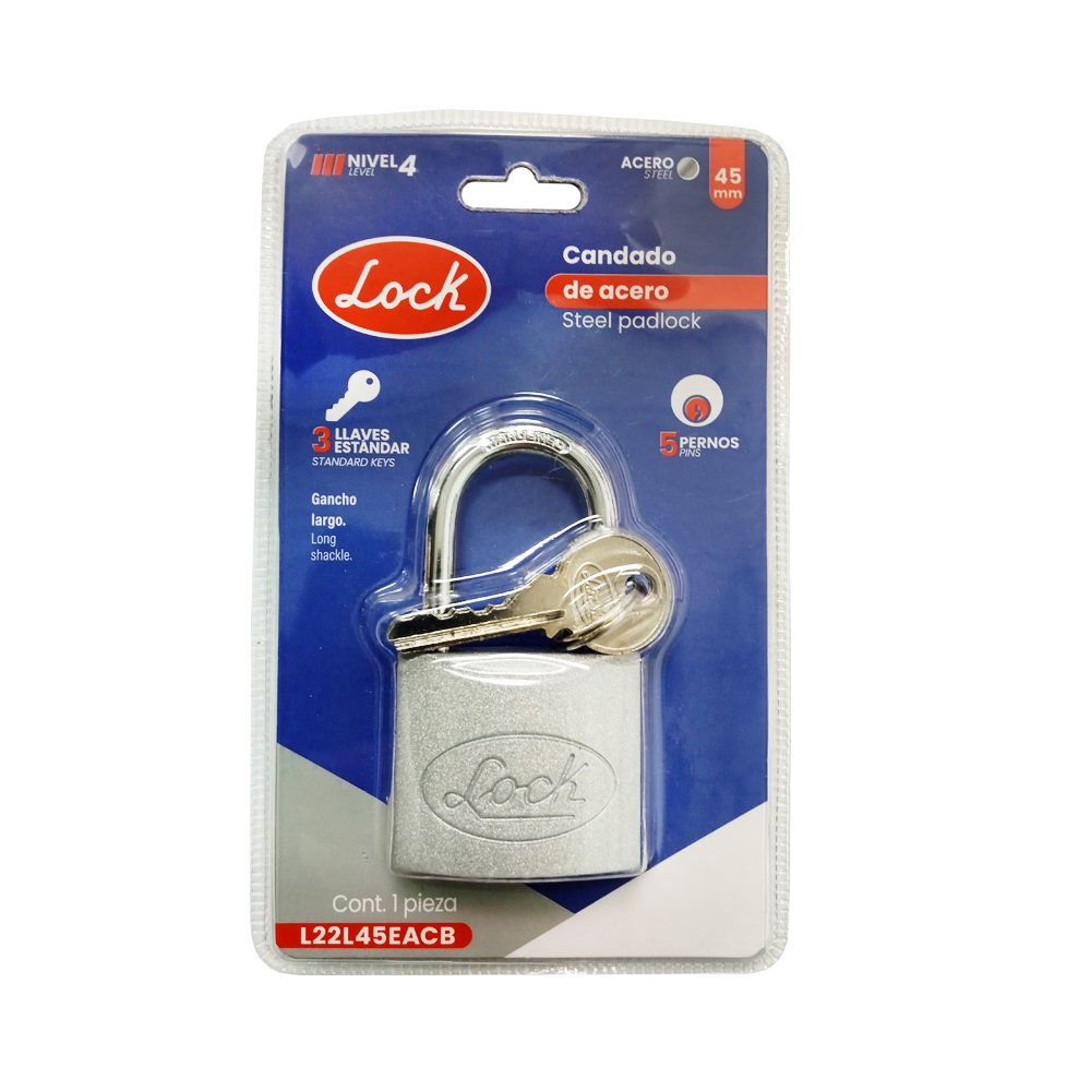CANDADO DE ACERO LARGO LOCK L22L45EACB LLAVE ESTANDAR 45 MILIMETROS