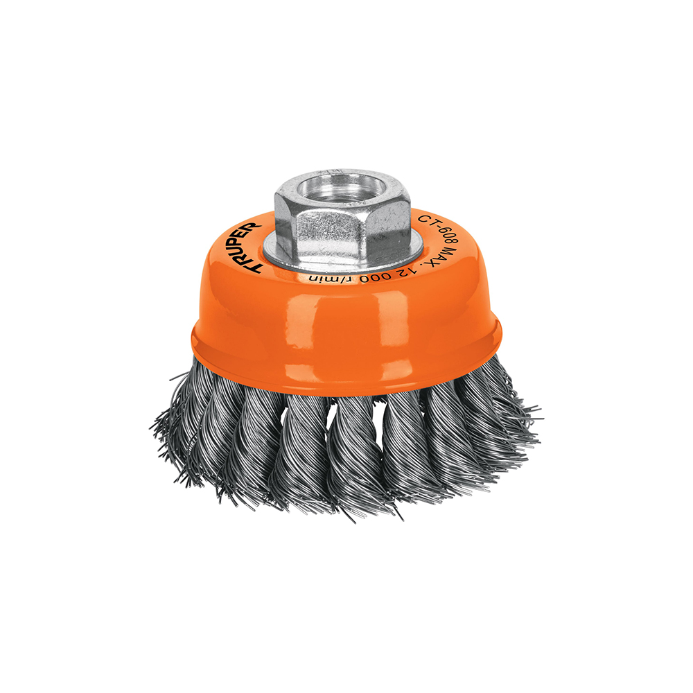 CARDA DE COPA ALAMBRE TRENZADO FINO TRUPER CT-608 DIAMETRO 3 PULGADAS EJE 5/8 PULGADAS