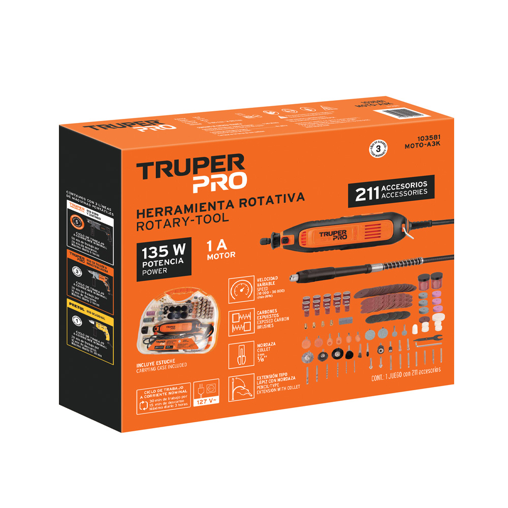 HERRAMIENTA MOTO-A3K ROTATIVA 135W CON 211 ACCESORIOS