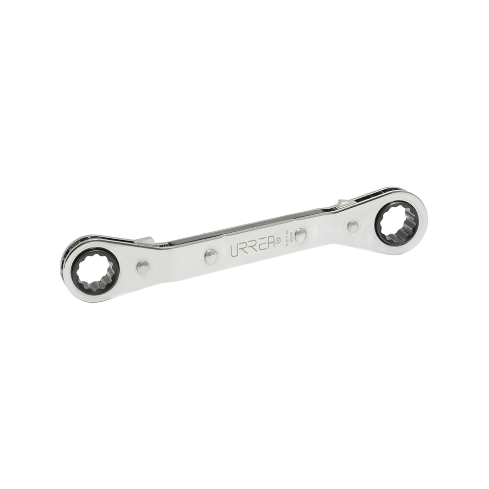 LLAVE DE ESTRÍAS ACODADA URREA 1185 PULIDO ESPEJO DE MATRACA EN PULGADAS, 12 PUNTAS, 3/4 X 7/8”