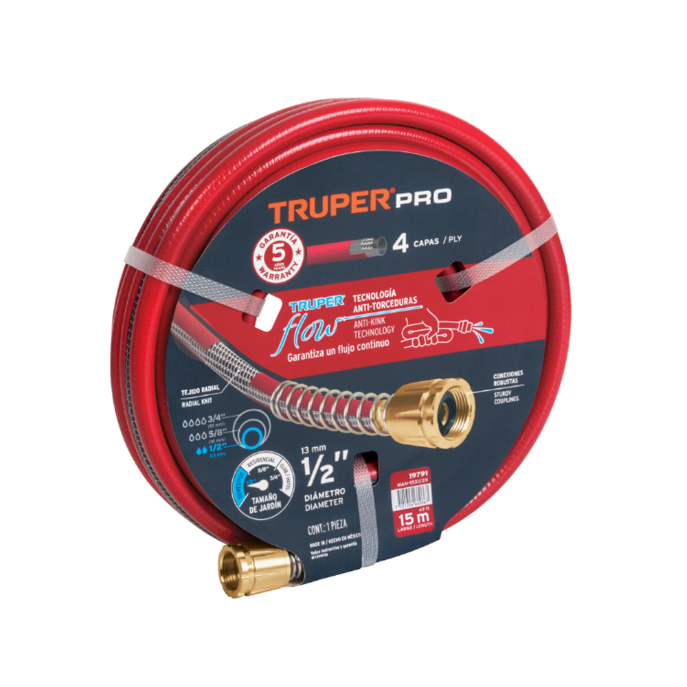 MANGUERA SUPER REFORZADA TRUPER MAN-15X1/2X DE 15 METROS CON CONEXION METALICA