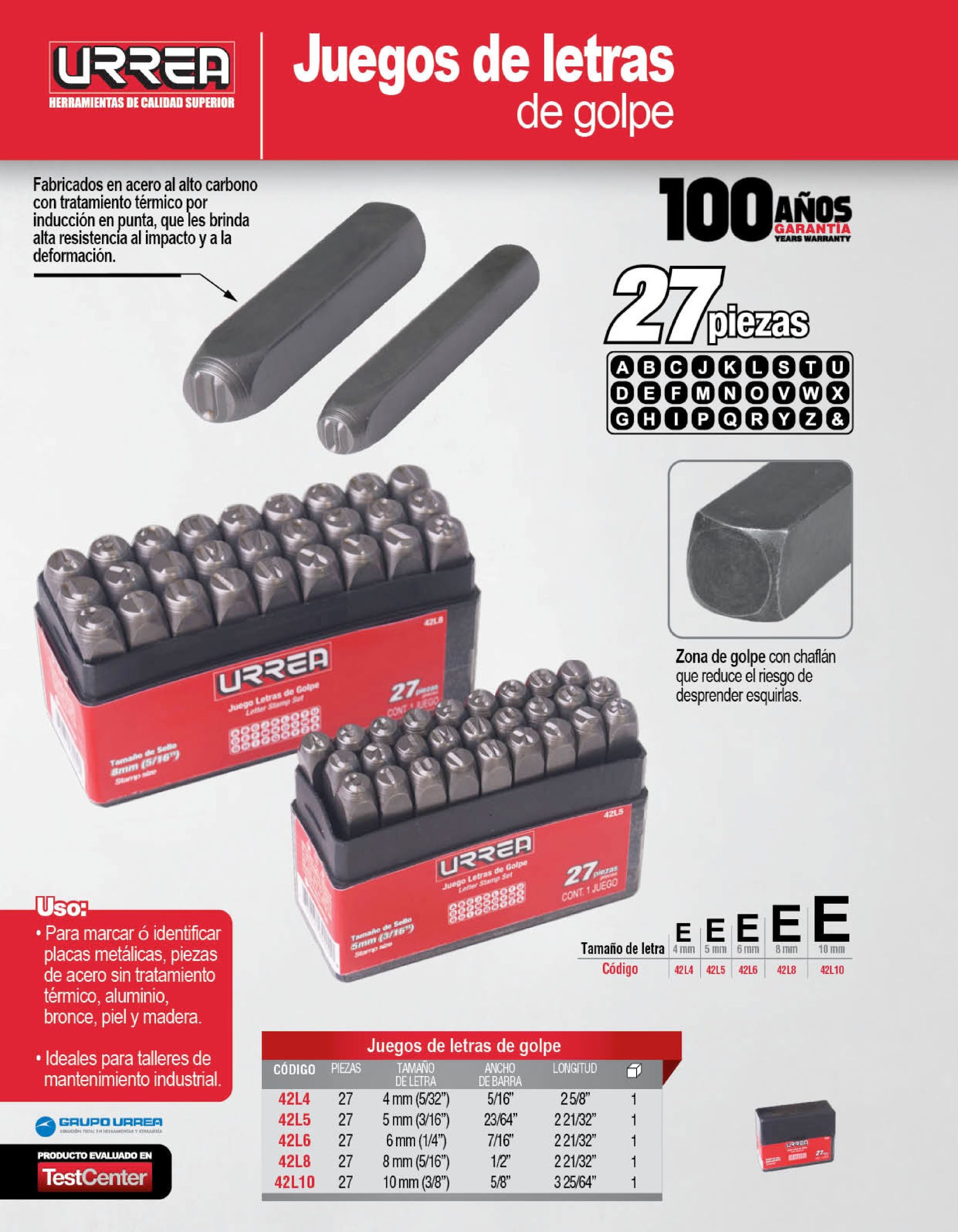 JUEGO DE LETRAS URREA 42L10 DE GOLPE 10 MILIMETRO 3/8”