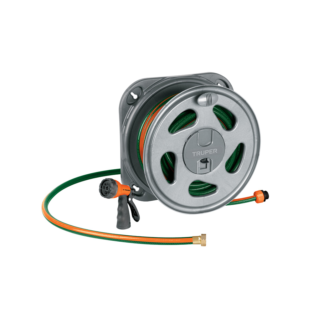 MANGUERA REFORZADA PISTOLA DE RIEGO Y PORTA MANGUERA TRUPER COMBO-301 DE 20 METROS