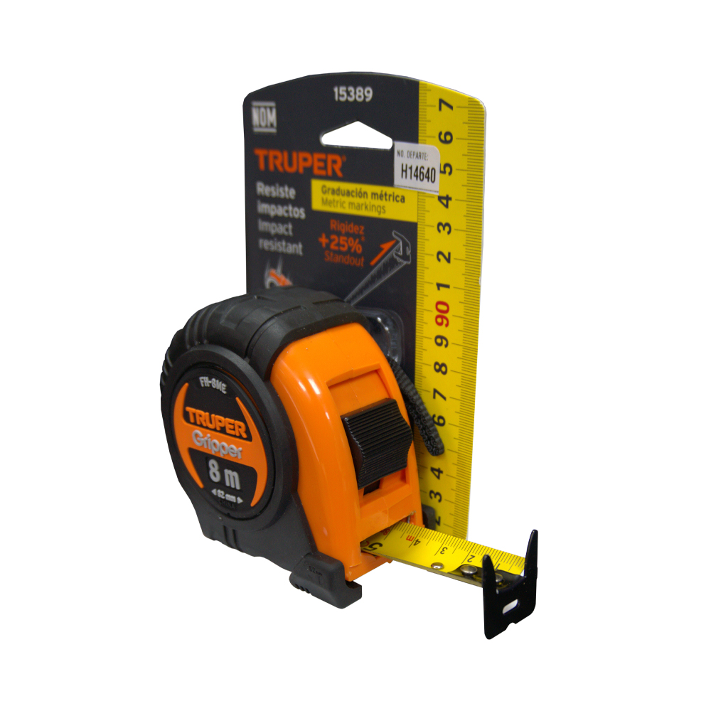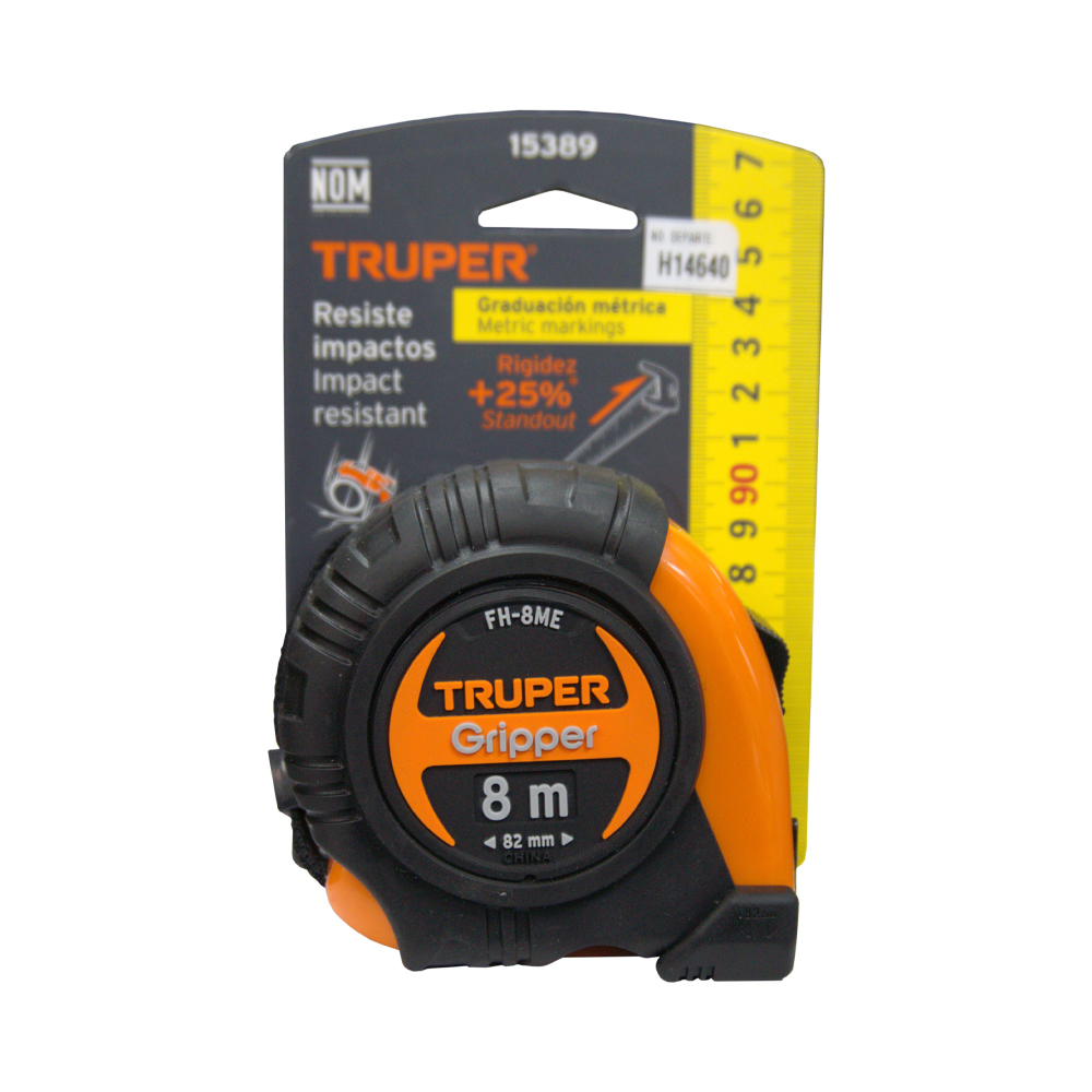 FLEXOMETRO GRIPPER CON GRADUACION METRICA DE 8 METROS TRUPER FH-8ME