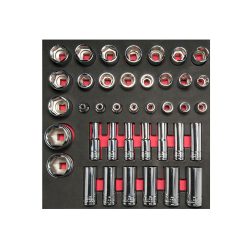 JUEGO DE DADOS Y ACCESORIOS URREA CH301 CON 27 PIEZAS CORTOS CUADRO DE 3/4”