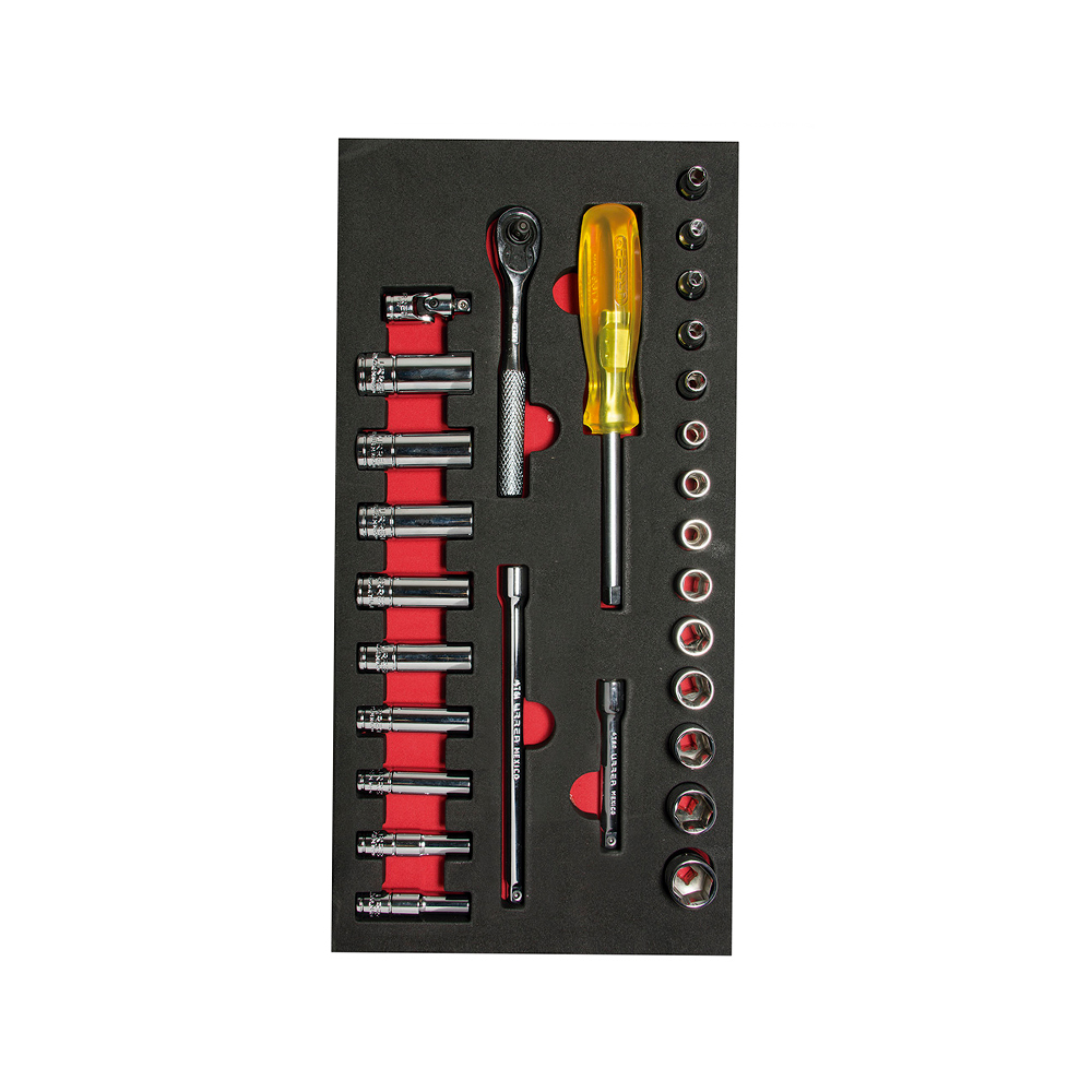 JUEGO DE DADOS CORTOS Y LARGOS URREA CH103 CON 28 PIEZAS CUADRO DE 1/4″