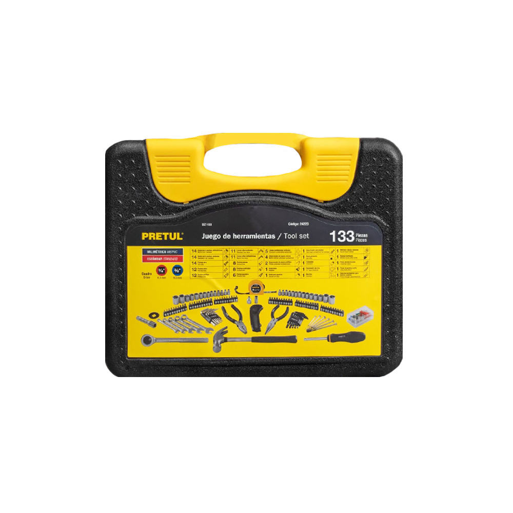 JUEGO PARA MECANICO 133 PIEZAS CUADROS 1/4 Y 3/8 PULGADAS TRUPER PRETUL SET-133