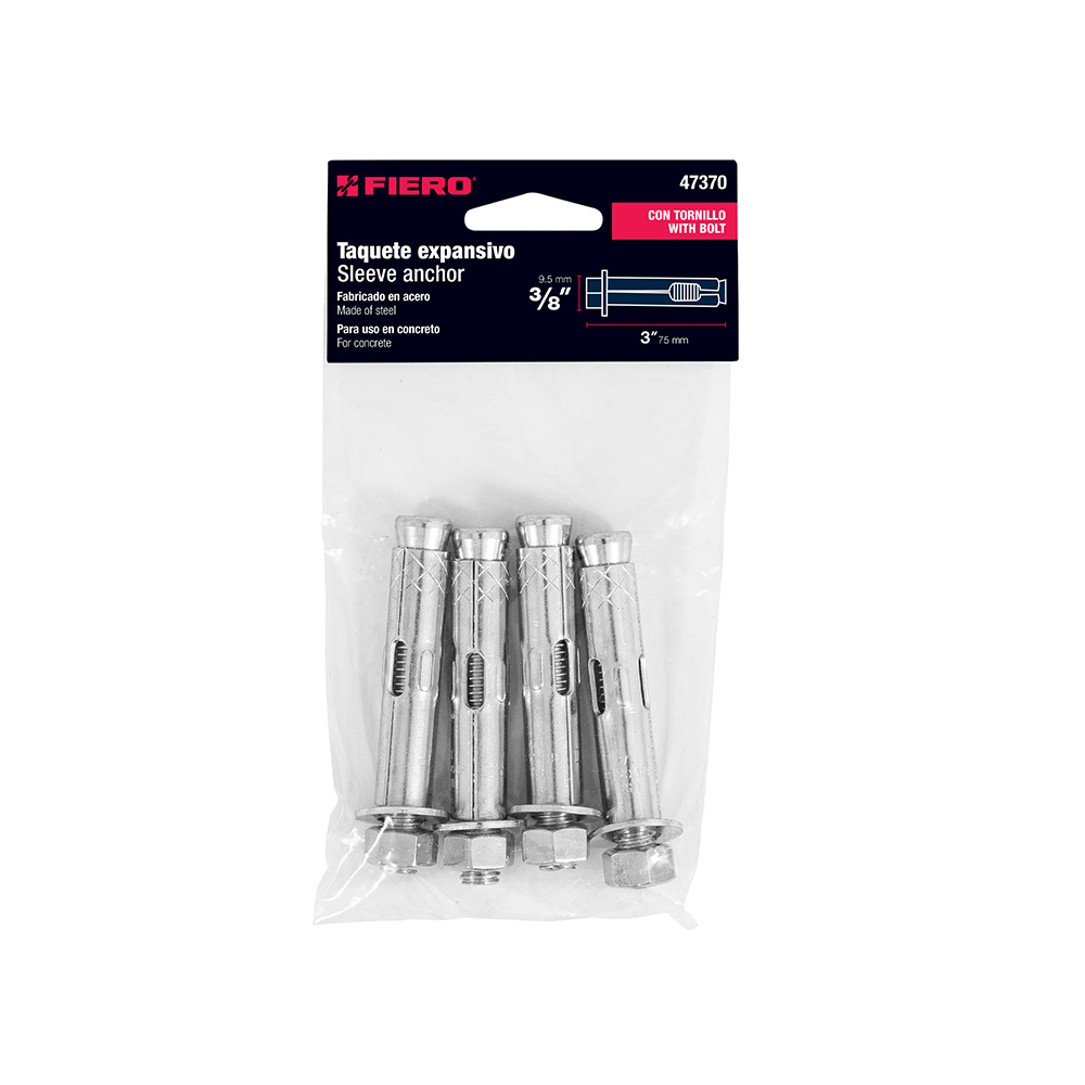 TAQUETES EXPANSIVOS CON TORNILLOS TRUPER FIERO TAE-3/8T BOLSA CON 4 PIEZAS 3/8 X 1/2 PULGADAS