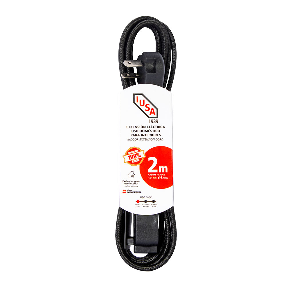 EXTENSIÓN ELECTRICA DOMESTICA IUSA 620031 NEGRA 2 METROS
