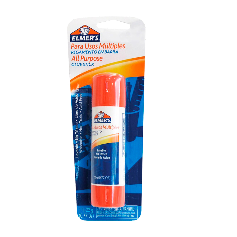 - El pegamento en barra Elmer’s es utilizado en papel, proyectos escolares, decoraciones, manualidades, telas y papel fotográfico, estas barras son fáciles de usar y limpiar.