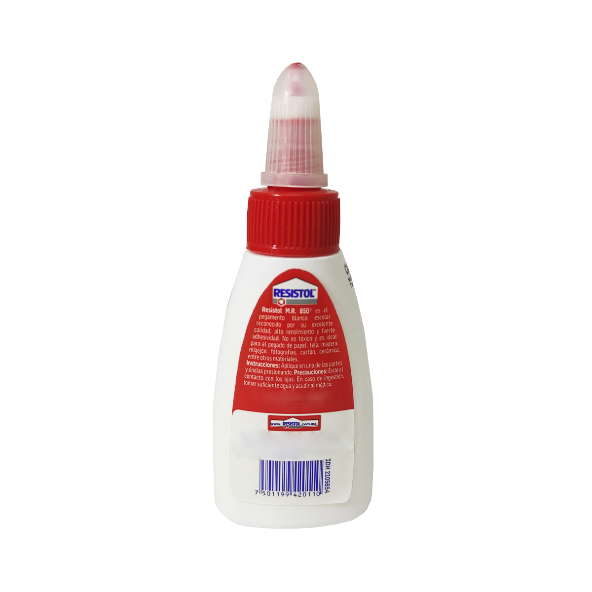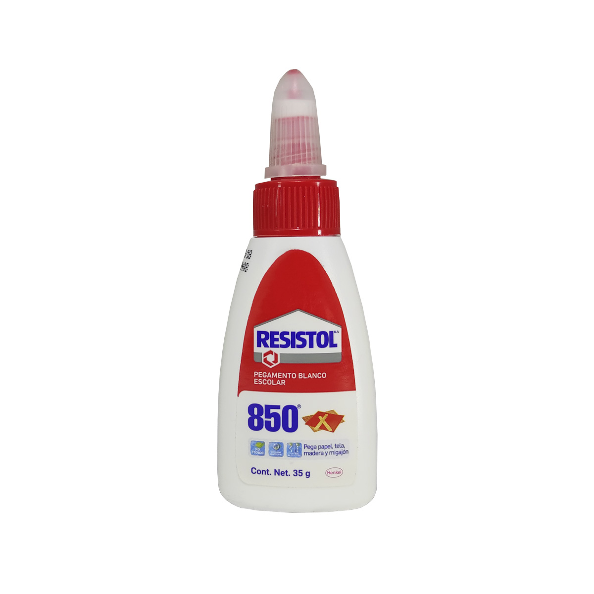 - Resistol 850 es el pegamento blanco escolar utilizado en trabajos escolares, Reconocido por su excelente calidad, alto rendimiento y fuerte adhesividad, además de ser seguro para uso infantil.