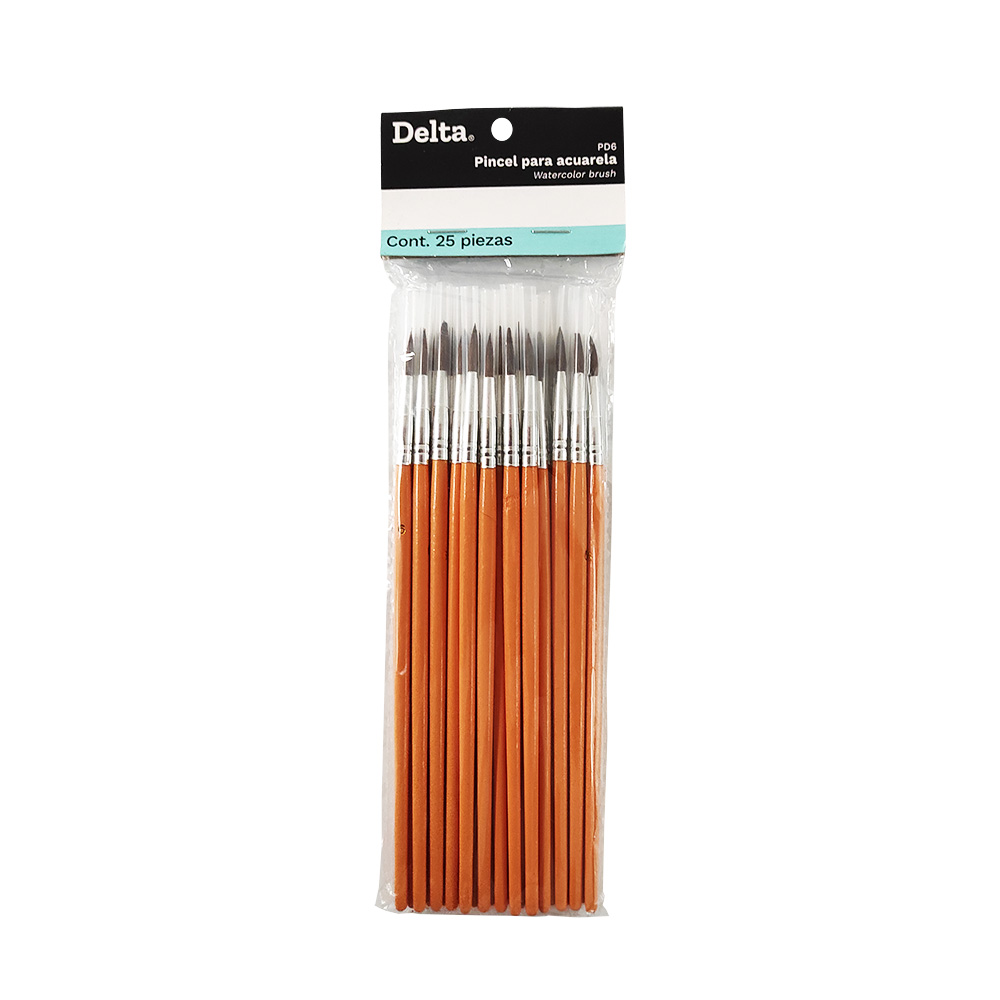 PINCEL PARA ACUARELA BARRILITO DELTA PD6 PAQUETE CON 25 PIEZAS CALIBRE 6