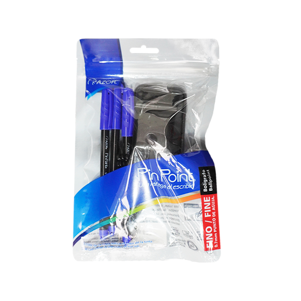 BOLIGRAFO AZOR PINPOINT CON BASE PAQUETE CON 3 PIEZAS AZUL PUNTA FINA 0.7 MILÍMETROS