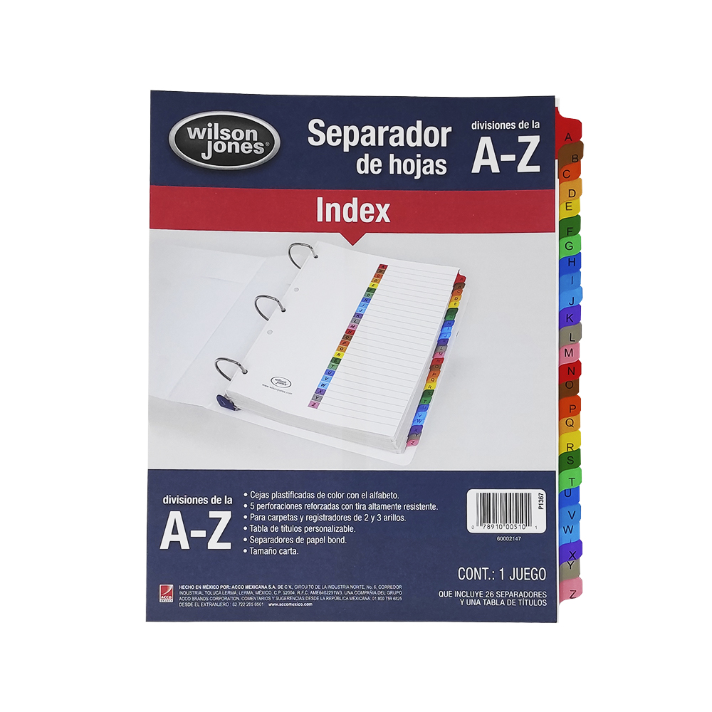 SEPARADOR PARA CARPETA ACCO WILSON JONES P1367 ALFABETICO INDEX