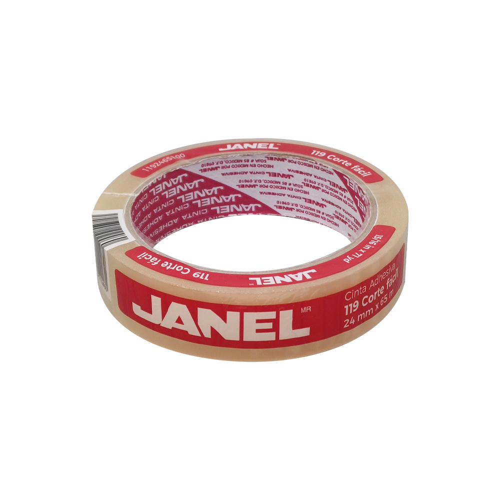 CINTA ADHESIVA JANEL 119 TRANSPARENTE 24 MILIMETROS X 65 METROS CORTE FACIL