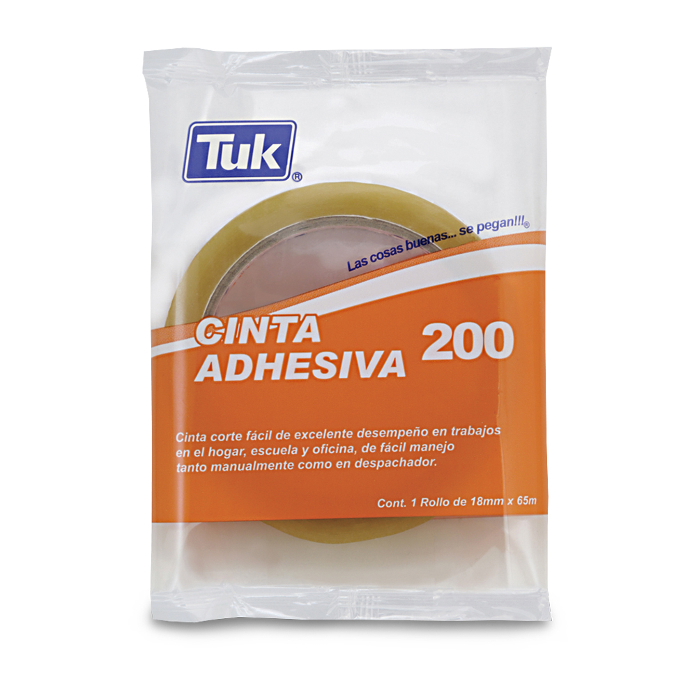 CINTA ADHESIVA TUK 200 TRANSPARENTE 18 MILIMETROS X 65 METROS