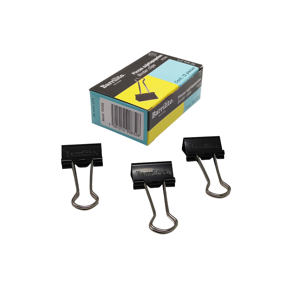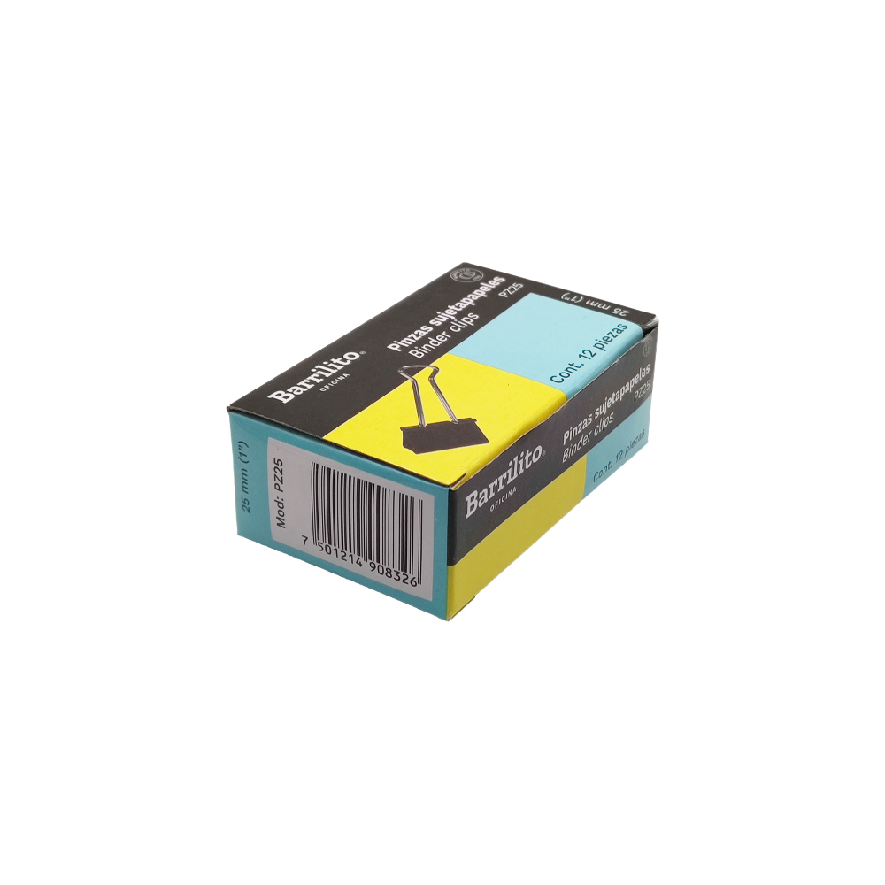 PINZA SUJETAPAPELES BARRILITO PZ25 PAQUETE CON 12 PIEZAS 25 MILIMETROS