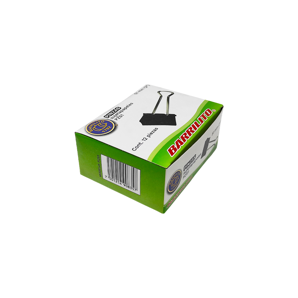 SUJETAPAPEL BARRILITO PZ51 PAQUETE CON 12 PIEZAS 51 MILIMETROS