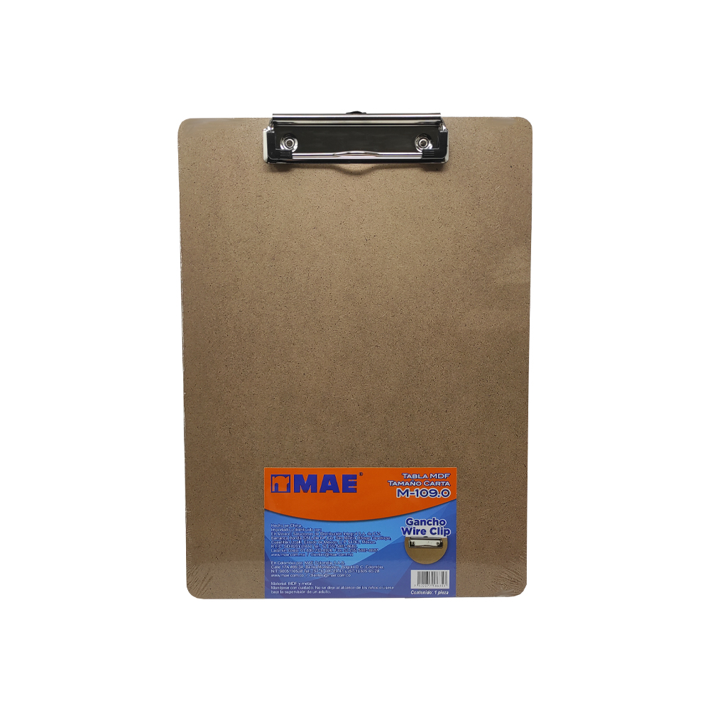 TABLA DE MADERA MAE M109.0 TAMAÑO CARTA CON BROCHE
