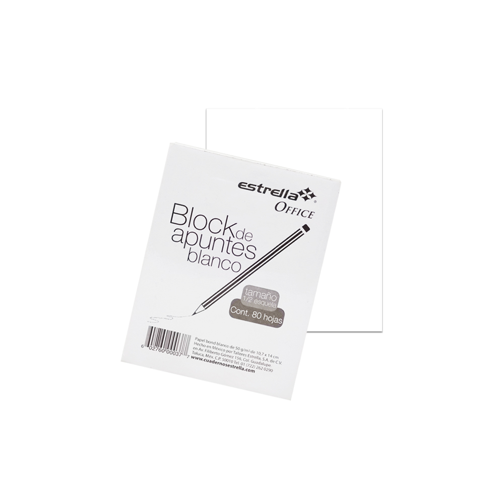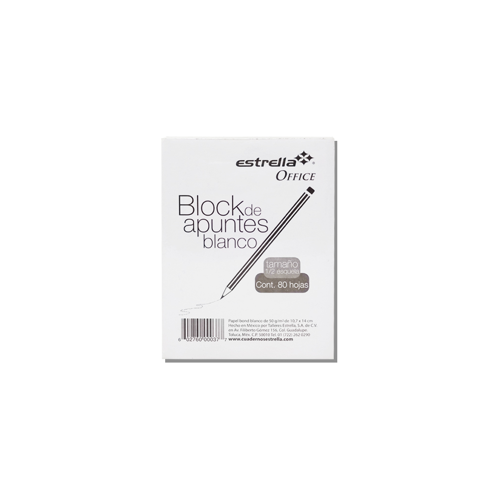 BLOCK DE NOTAS ESTRELLA 0037 OFFICE 80 HOJAS BLANCO 1/2 ESQUELA ENGOMADO