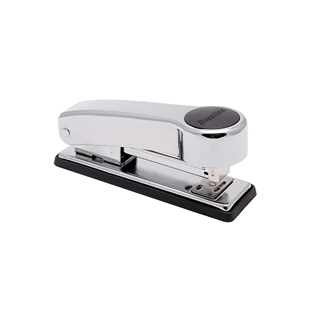 - Engrapadora metálica con acabado cromo.