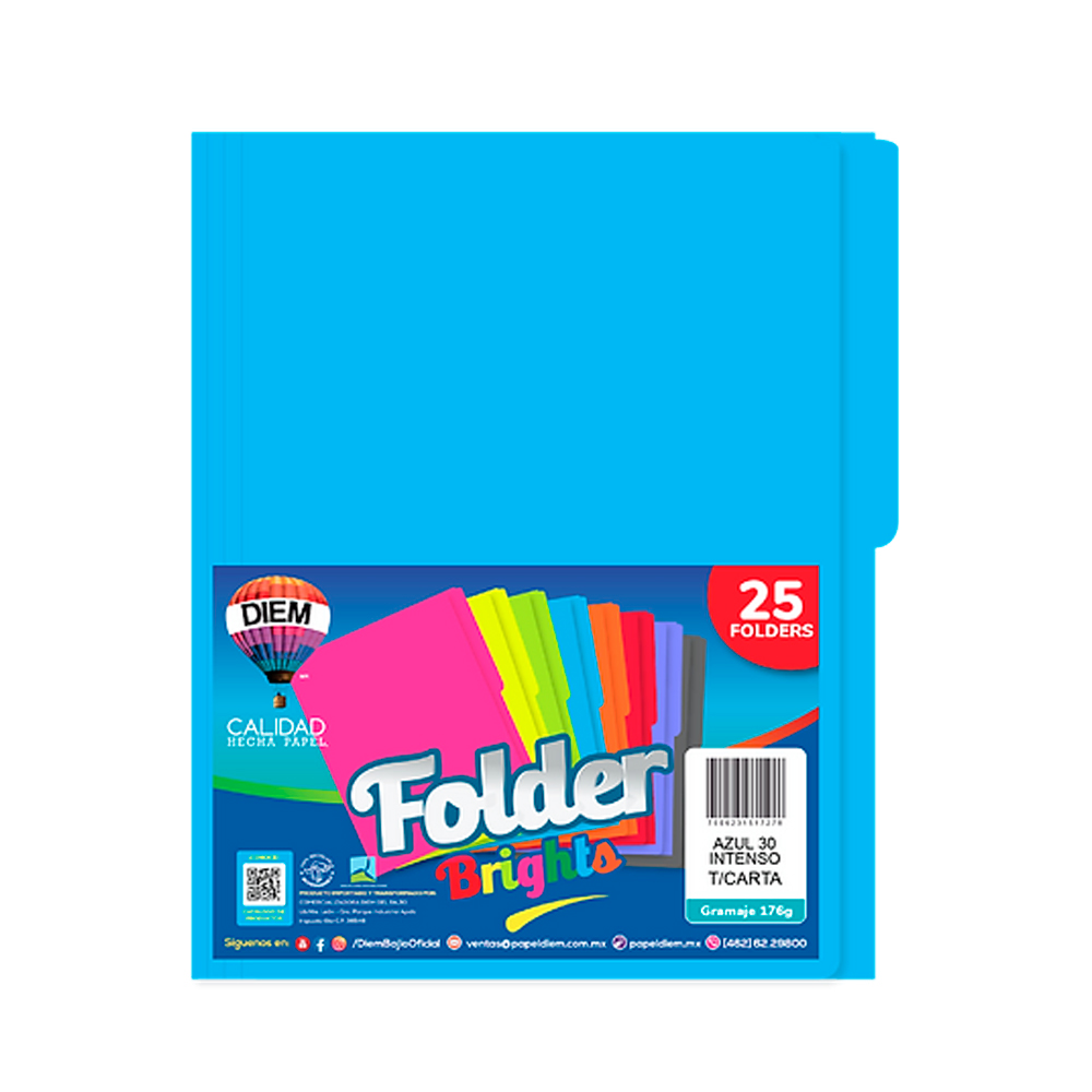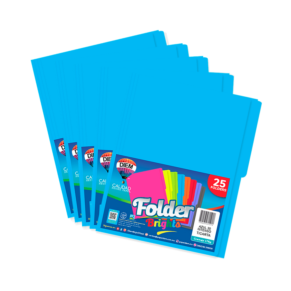 FOLDER TAMAÑO CARTA DIEM BRIGHTS AZUL INTENSO 030 PAQUETE CON 25 PIEZAS
