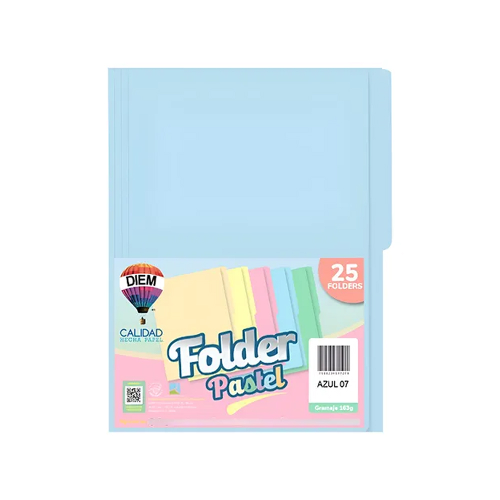 FOLDER TAMAÑO CARTA DIEM PASTEL AZUL 07 PAQUETE CON 25 PIEZAS
