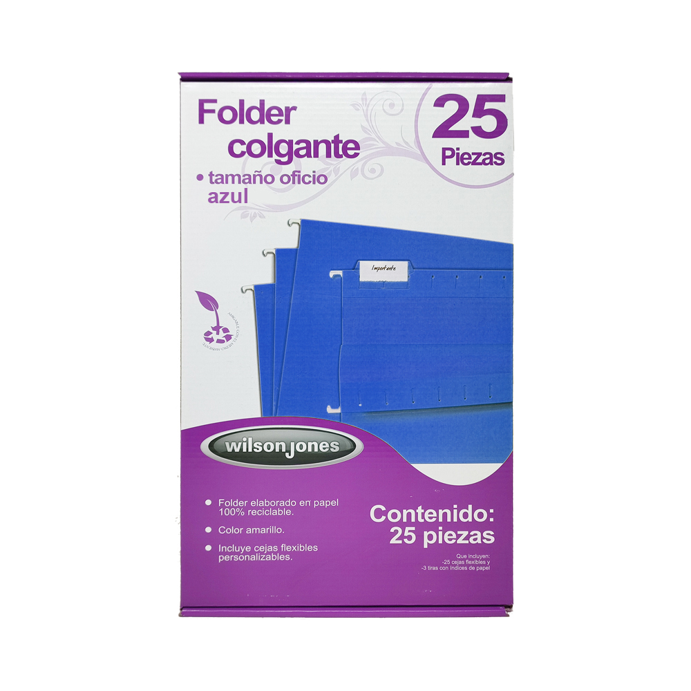 FOLDER TAMAÑO OFICIO COLGANTE ACCO WILSON JONES P3634 AZUL PAQUETE CON 25 PIEZAS