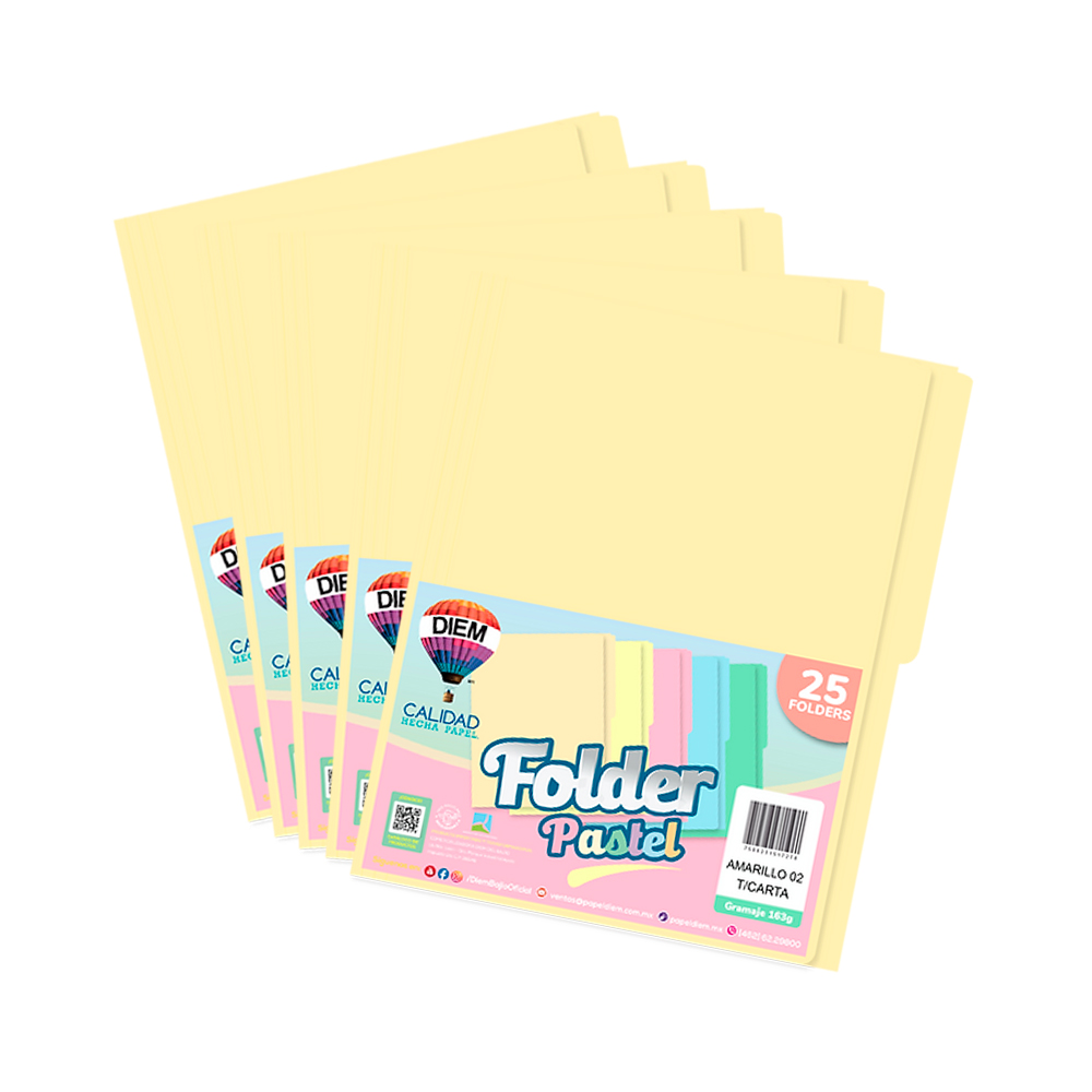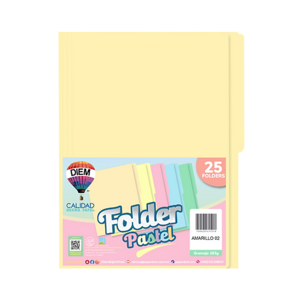 FOLDER TAMAÑO OFICIO DIEM PASTEL AMARILLO 002 PAQUETE CON 25 PIEZAS