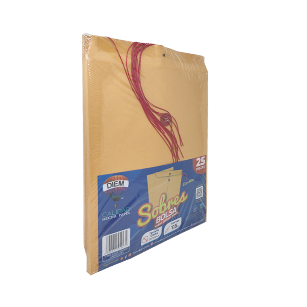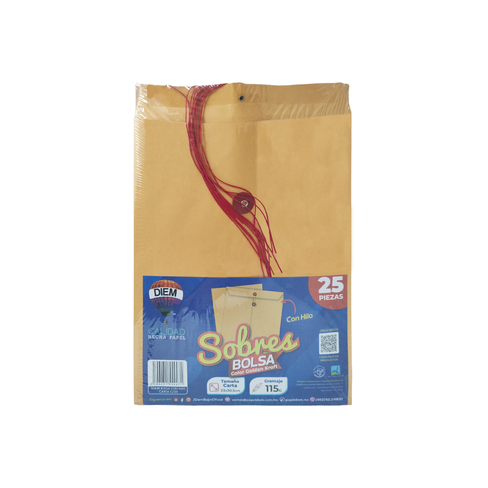 SOBRE DE PAPEL KRAFT DIEM PAQUETE CON 25 PIEZAS GOLDEN TAMAÑO CARTA CON RONDANA