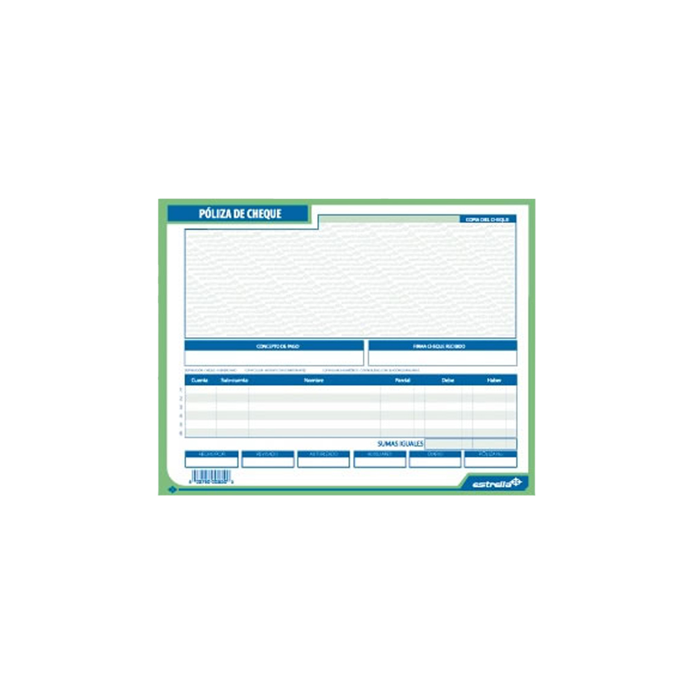 - Póliza cheque tamaño carta y 1/2 carta: