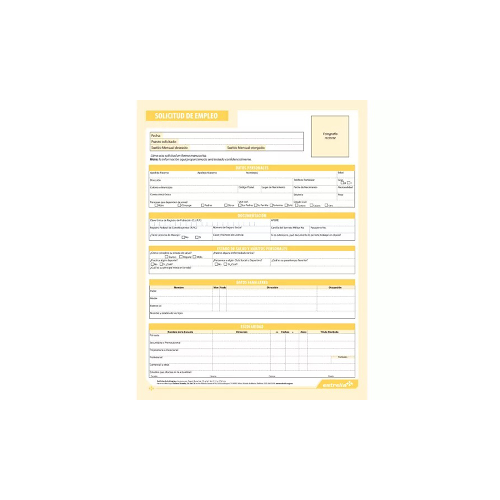 BLOCK SOLICITUD DE EMPLEO ESTRELLA OFFICE 0655 CON 200 HOJAS
