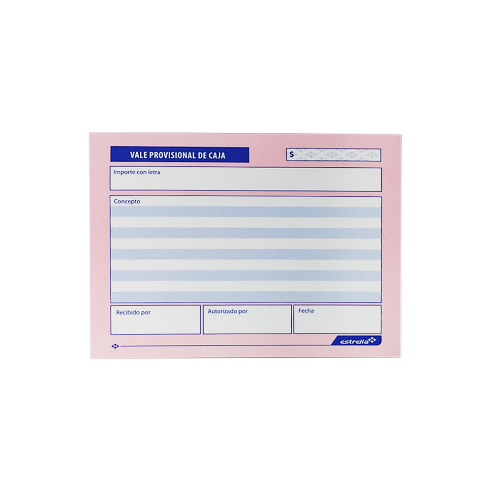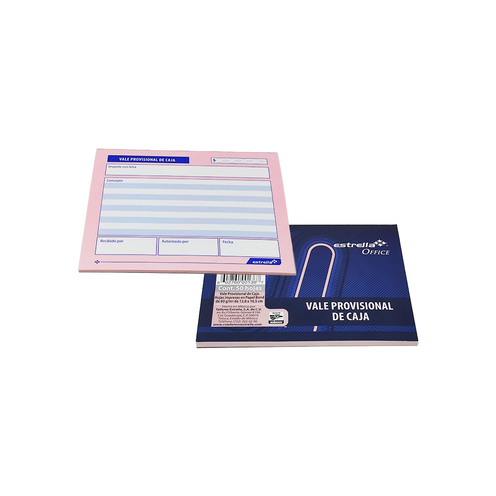 BLOCK VALE PROVISIONAL ESTRELLA 0136 DE CAJA OFFICE 50 HOJAS
