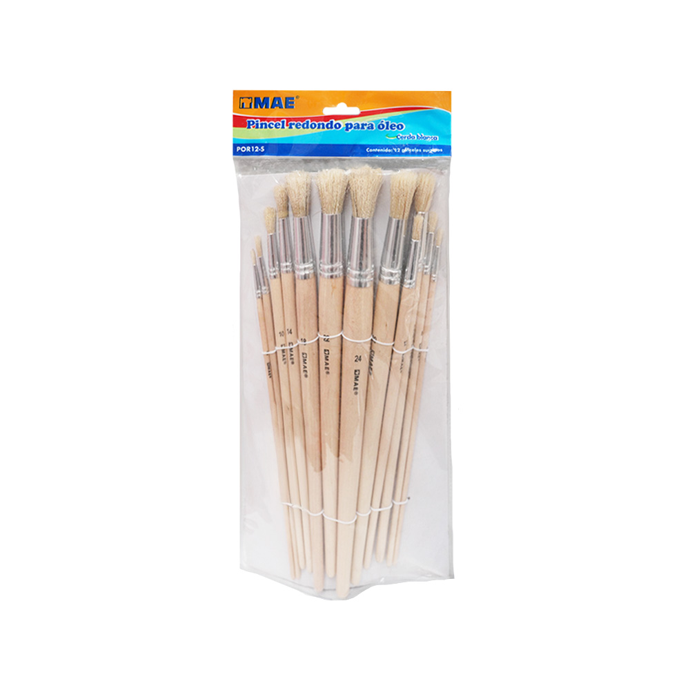 SET DE 12 PINCELES DEL NUMERO 02 AL 24 MAE POR12-S REDONDO DE PELO DE CERDO PARA ÓLEO