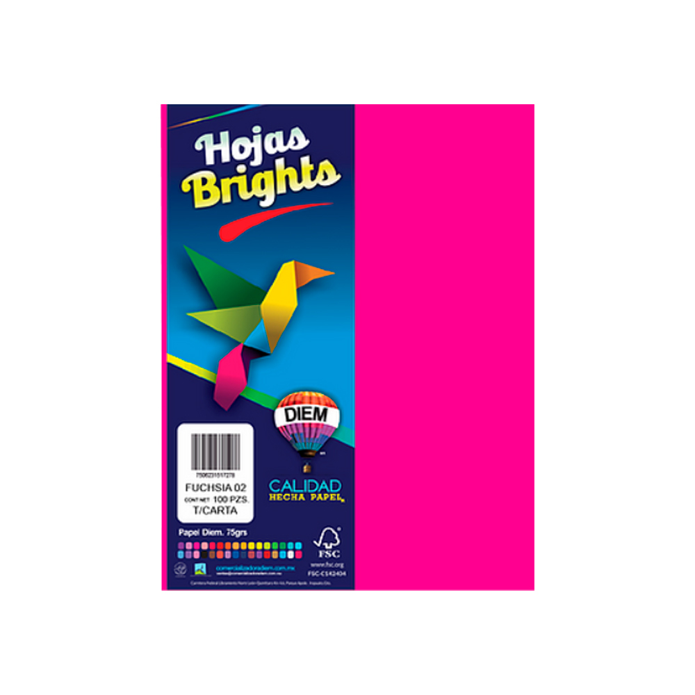 HOJA DE PAPEL DIEM BRIGHTS PAQUETE CON 100 PIEZAS FUCHSIA 02 NEON TAMAÑO CARTA 75 GRAMOS