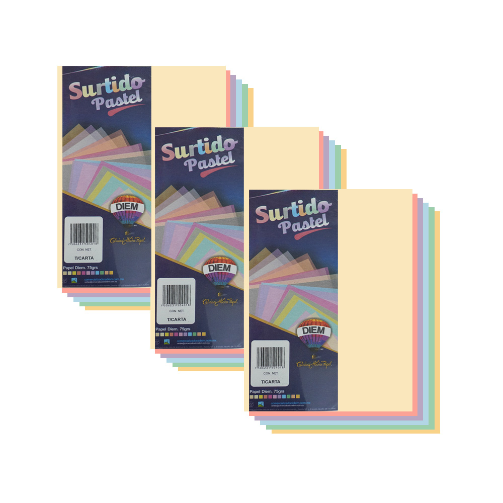 HOJA DE PAPEL DIEM PASTEL PAQUETE 250 PIEZAS SURTIDO TAMAÑO CARTA 75 GRAMOS