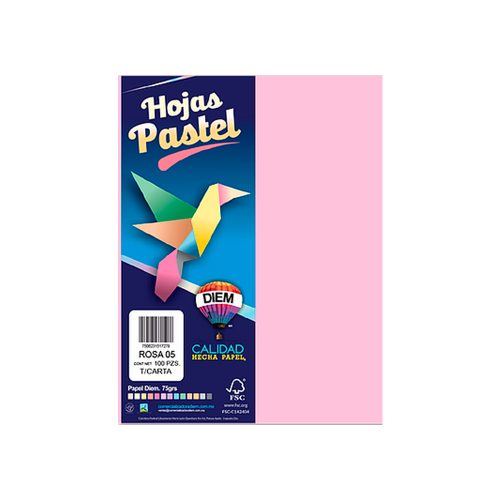 HOJA DE PAPEL DIEM PASTEL PAQUETE CON 100 PIEZAS ROSA 05 TAMAÑO CARTA 75 GRAMOS