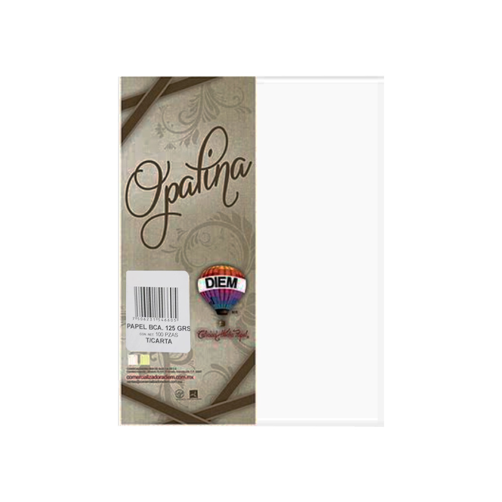 HOJA DE PAPEL OPALINA DIEM PAQUETE CON 100 PIEZAS BLANCO TAMAÑO CARTA 125 GRAMOS