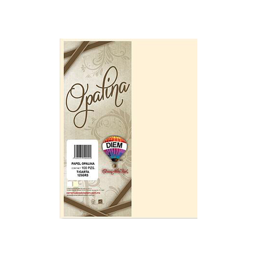 HOJA DE PAPEL OPALINA DIEM PAQUETE CON 100 PIEZAS MARFIL TAMAÑO CARTA 125 GRAMOS
