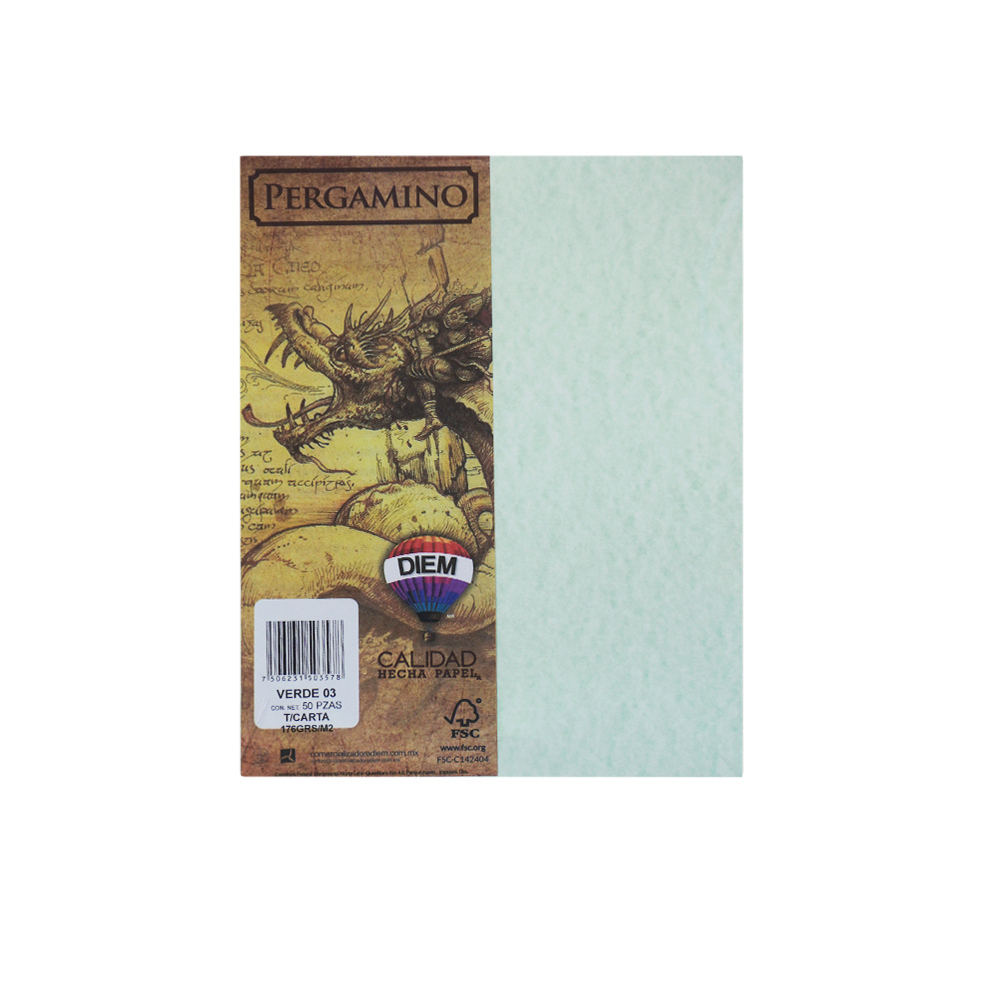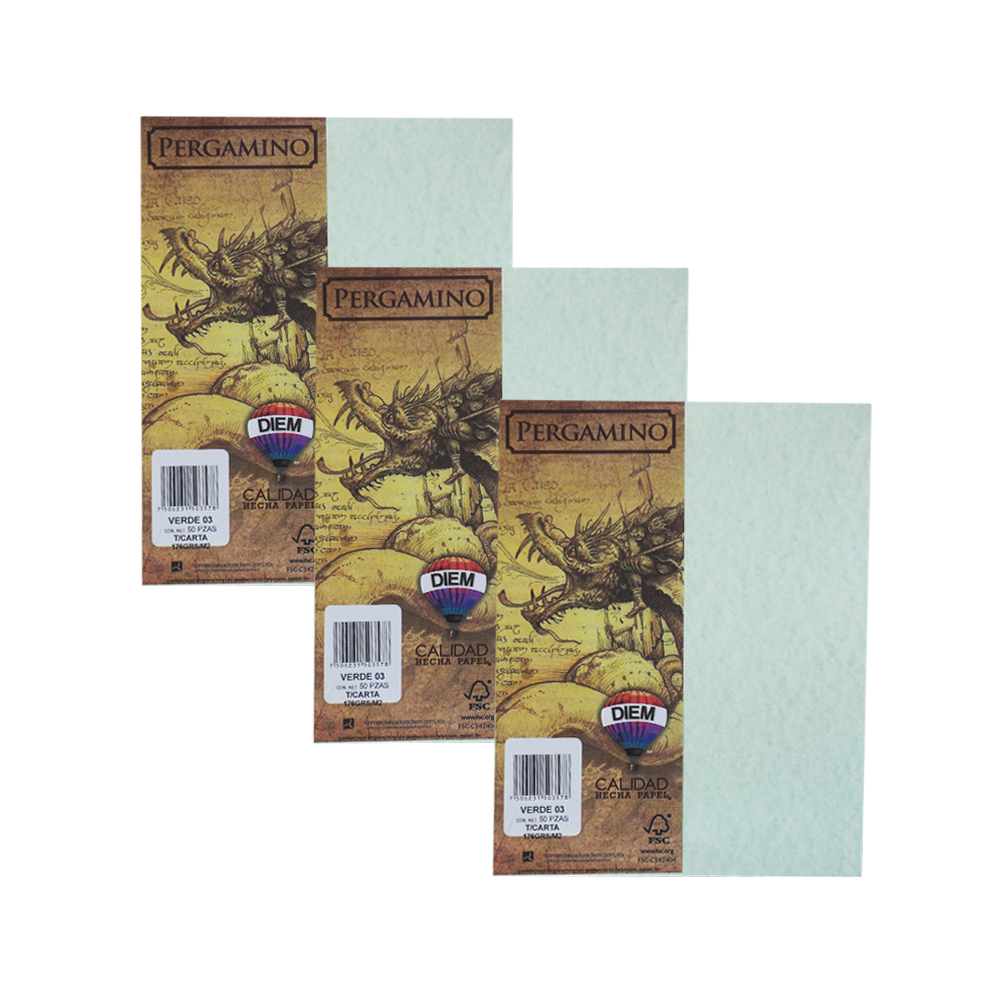 HOJA PERGAMINO PAPEL DIEM VERDE03 PAQUETE CON 100 PIEZAS TAMAÑO CARTA 90 GRAMOS