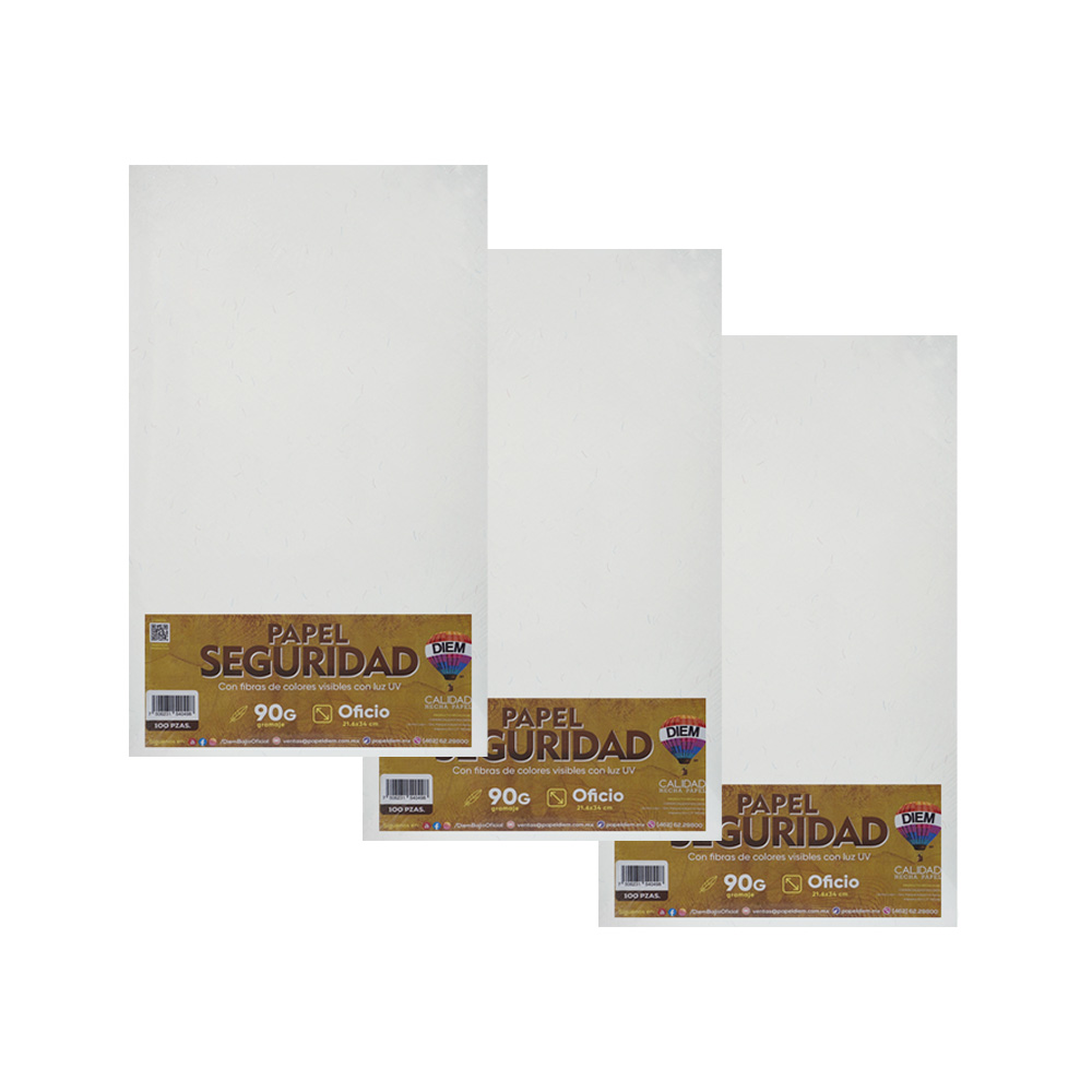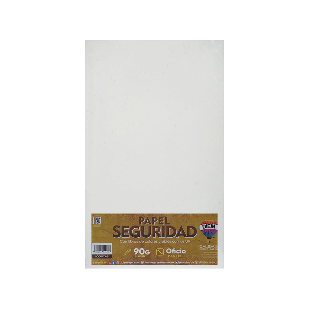 PAPEL SEGURIDAD CON PATRON VISIBLE CON LUZ UV AZUL TAMAÑO OFICIO PAQUETE DE 100 PIEZAS0 90 GRAMOS