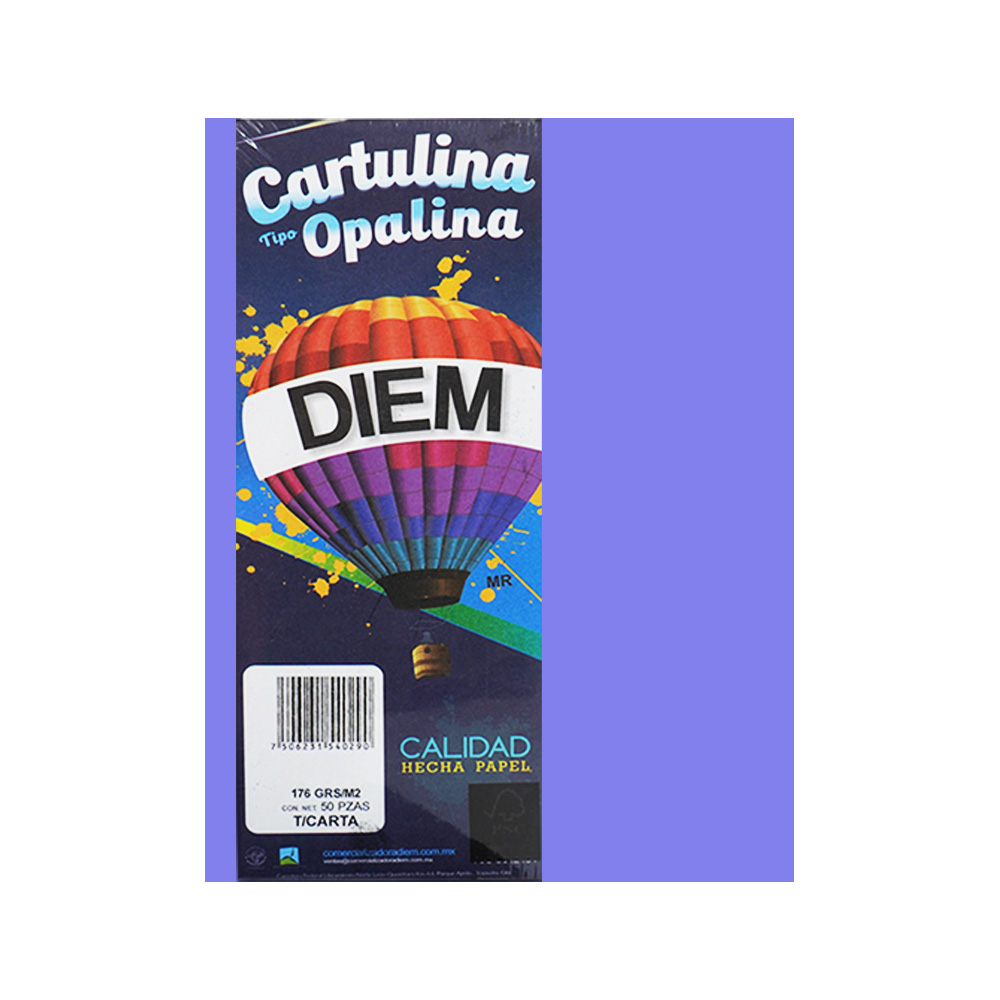 CARTULINA OPALINA DIEM BRIGHT UVA 00016A TAMAÑO CARTA 50 PIEZAS 176 GRAMOS
