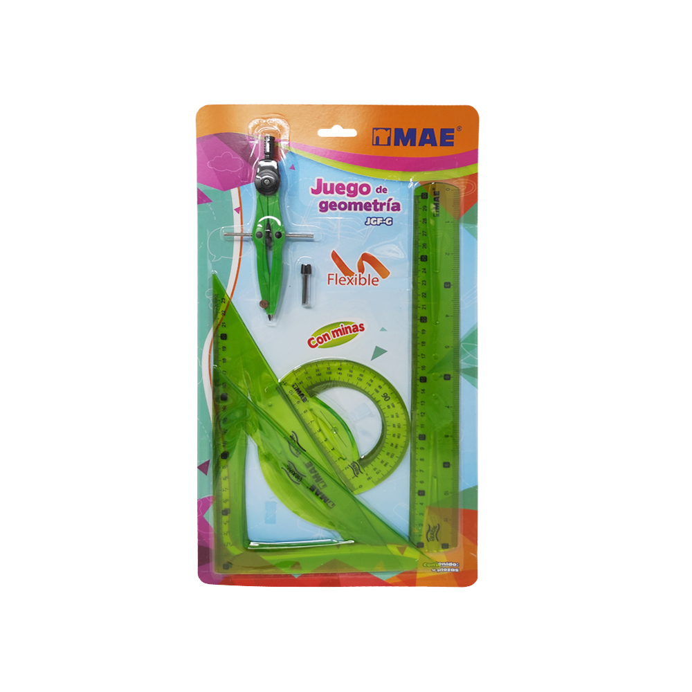 JUEGO DE GEOMETRIA MAE JGF-G FLEXIBLE CON COMPAS DE PRECISION GRANDE