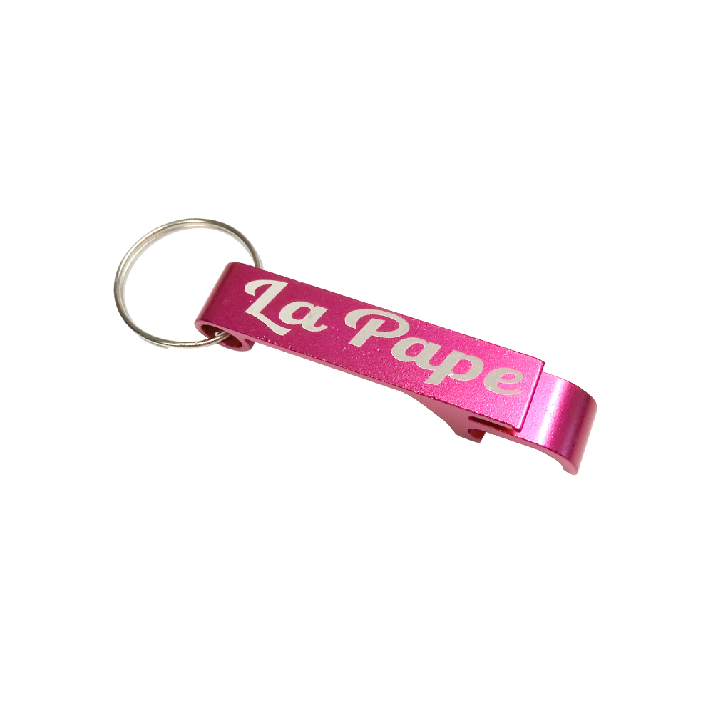 LLAVERO DESTAPADOR LA PAPE ROSA ALUMINIO METALICO