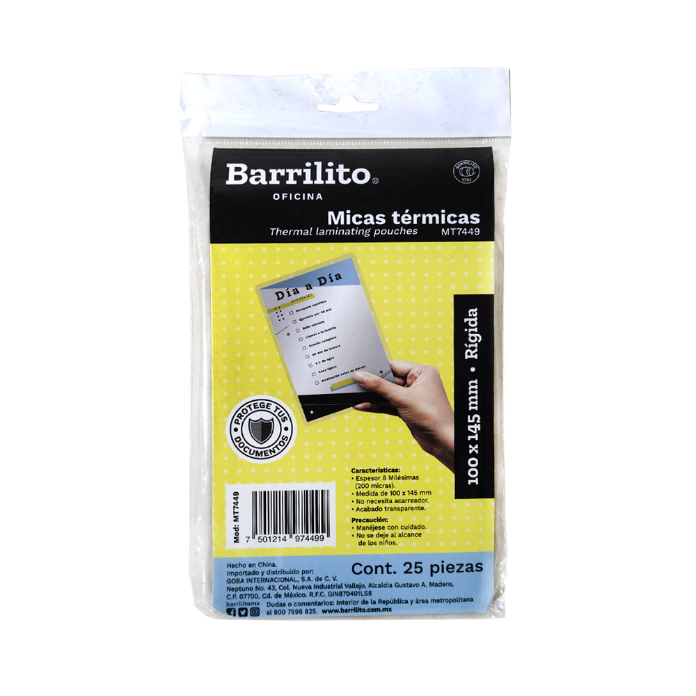 MICA TERMICA BARRILITO MT7447 TAMAÑO ID 6.5 X 9.5 CENTIMETROS 25 PIEZAS